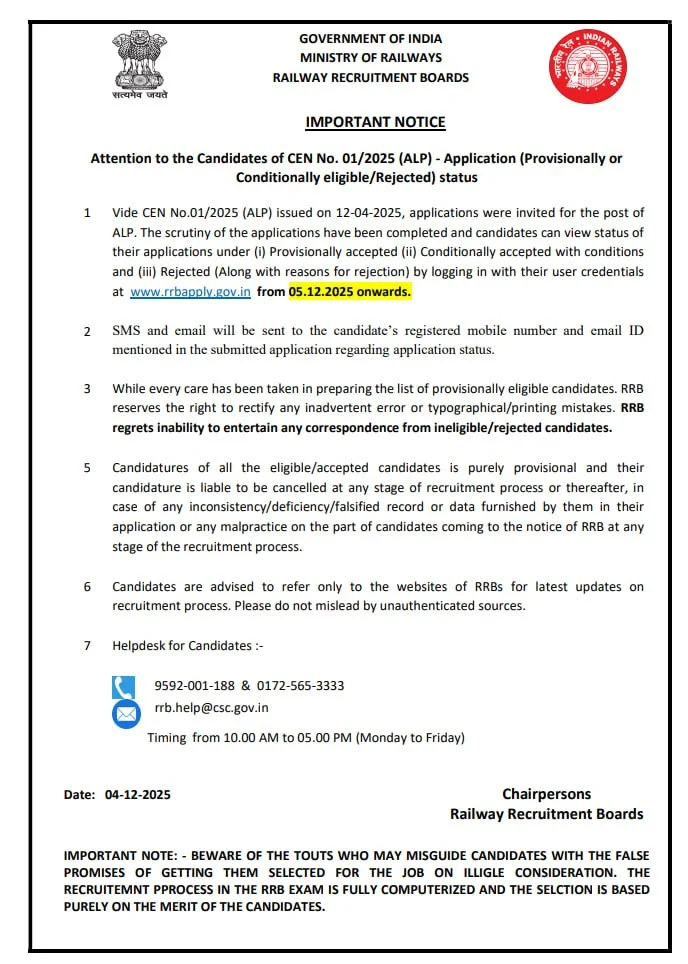 Railway RRB ALP Recruitment 2025 Notification: Railway Recruitment Boards (RRB) has released the notification of Railway RRB ALP Vacancy 2025 for 9970 (Tentative) post on its official website. For this eligible candidates can apply online from 12 April to 19 May 2025 on the official website. We will give you complete information about this recruitment below.